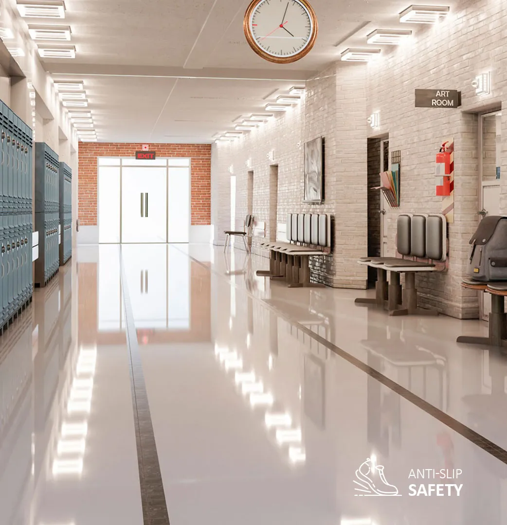 • Sécurité : Nos surfaces antidérapantes réduisent le risque de chutes, permettant aux étudiants de se déplacer en toute sécurité.
